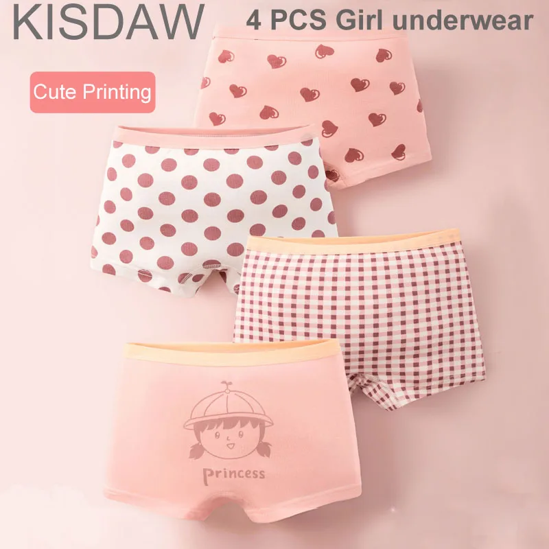 4 Packs Cotton Children Panties Girls Boxer Briefs Pink Cute Cartoon Kids Underwear Panty Antibacterial Breathable Girls Undies