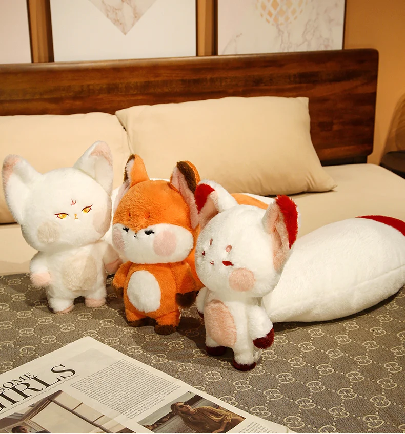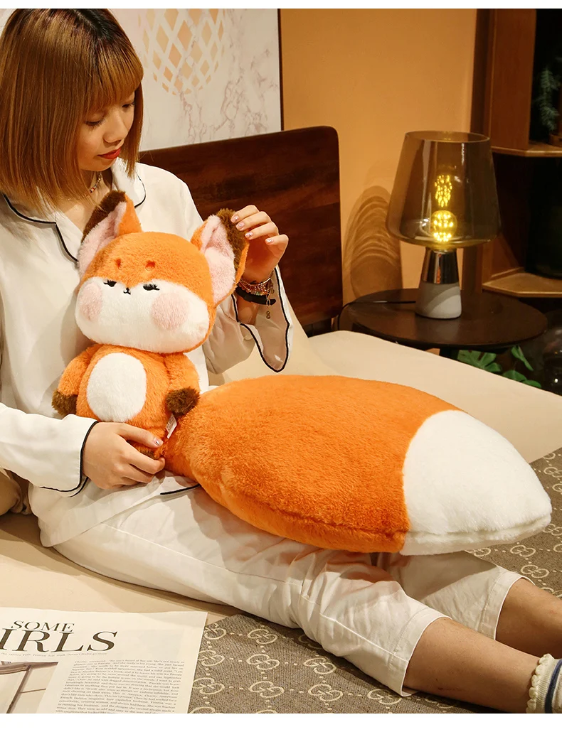 Cute Soft Orange White Big Tailed Fox Plush Toy Stuffed Animals Kawaii Fluffy Dudu Cat Fox Dolls Pillow Creative Gifts For Girl