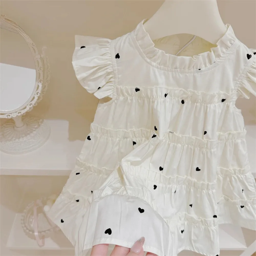 Summer Girls Sweet Cute Heart Print Sleeveless Layered Princess Dress 1 Pc 2-7 Years Kids Fashion Simple Casual Clothes